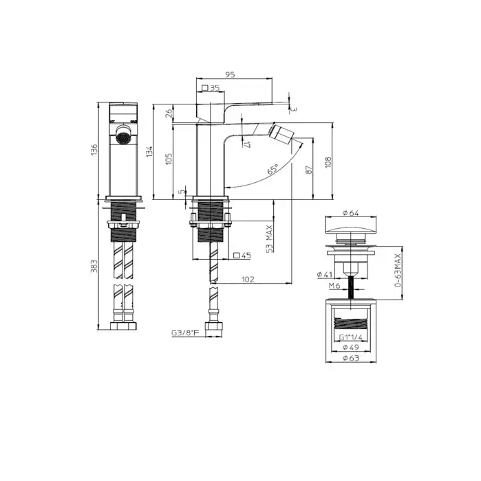 Bossini Gillo Смеситель для биде GILLO с донным клапаном 1”1/4 и гибкая подводка из нерж. Стали, цвет: хром