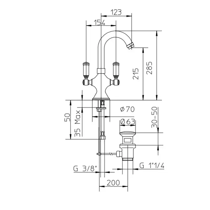 Bossini Liberty Смеситель для раковины на 1 отв., цвет: античная бронза