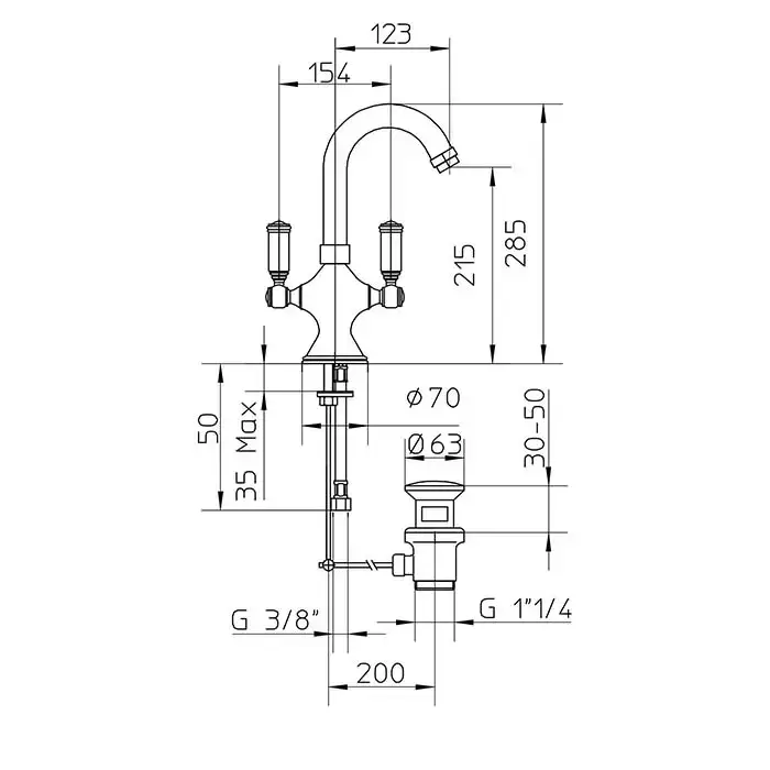 Bossini Liberty Смеситель для раковины на 1 отв., с поворотным изливом и заглушкой 1”1/4, цвет: никель матовый