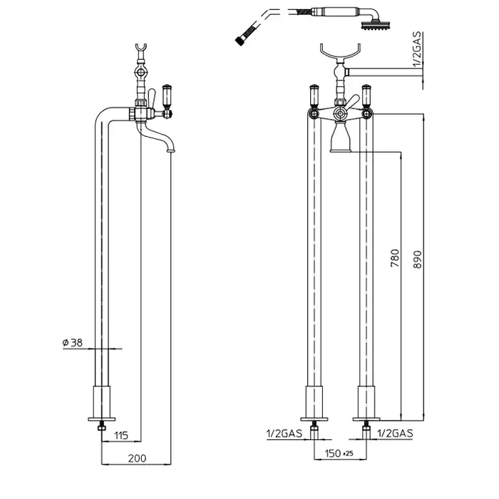 Bossini Liberty Смеситель для ванны, напольный, высота 89см, цвет: античная бронза