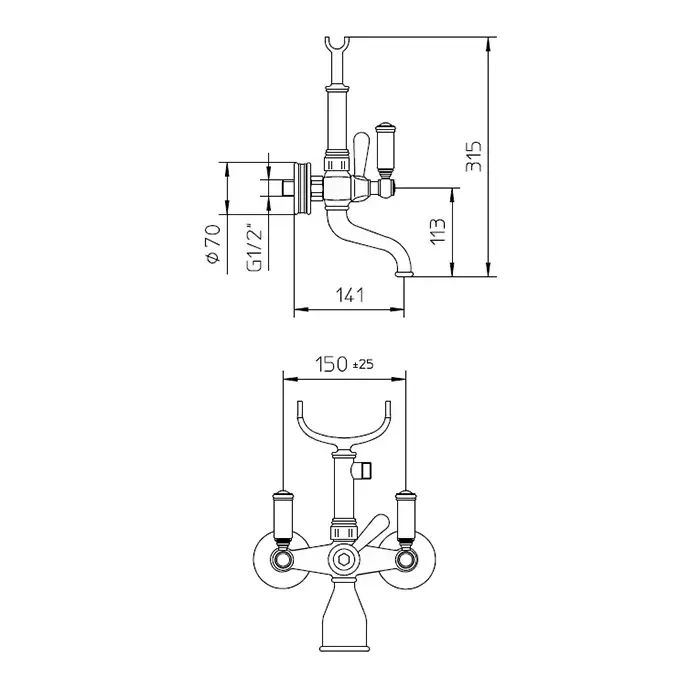 Bossini Liberty Смеситель наружный для ванной с переключателем,лейка LIBERTYцвет:GOM, шланг из латуни дв. фальцевания 150 см, цвет: хром