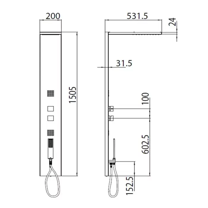 Bossini Manhattan Душевая панель 150x50x20см, 4 режима,монокомандный смеситель, цвет: хром