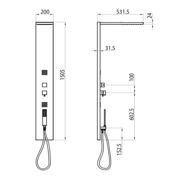 Bossini Manhattan Душевая панель из стали, 150х20х53см, с 4мя функциями, термостат, настенная, цвет: хром