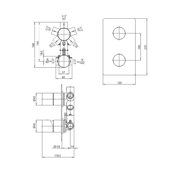 Bossini Nobu Наружная часть встраиваемого монорычажного универсального смесителя на 2-5 выходов. цвет: нержавеющая сталь