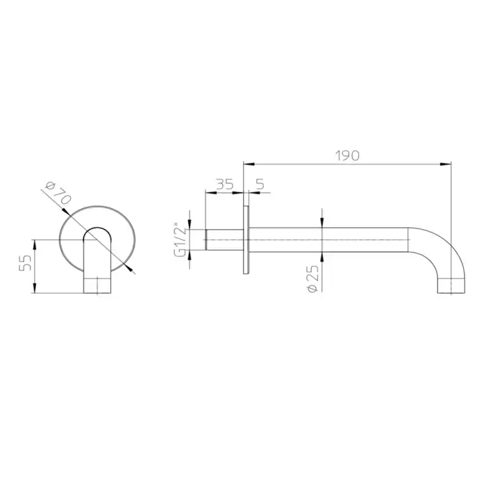 Bossini Nobu Настенный излив для ванны, Ø 25 мм, соединение 1/2”M.190 мм, цвет: нержавеющая сталь