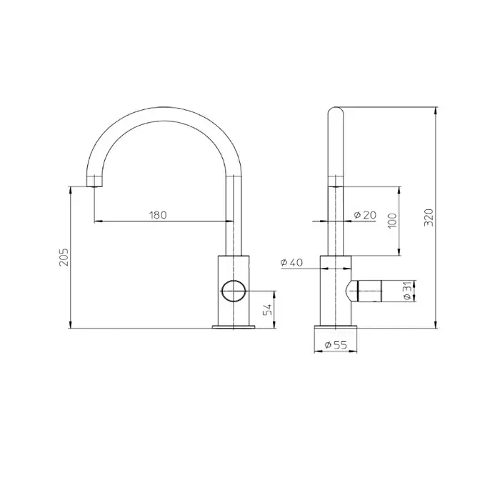 Bossini Nobu Смеситель с боковым управлением и поворотным изливом, без донного клапана, цвет: цвет: нержавеющая сталь