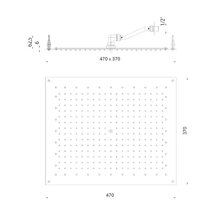 BOSSINI PARIS-RECTANGULAR Верхний душ 470 x 370 мм, FLAT, цвет: хром