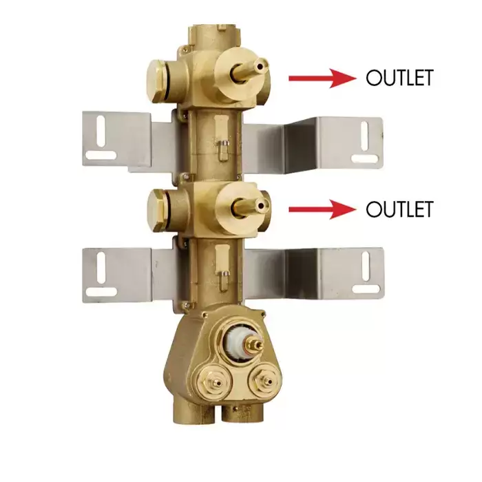 Bossini Встраиваемая часть термостата с 2 запорными клапанами, (2 выхода) высокой пропускной способности на ¾”, уст-ка верт/гор.