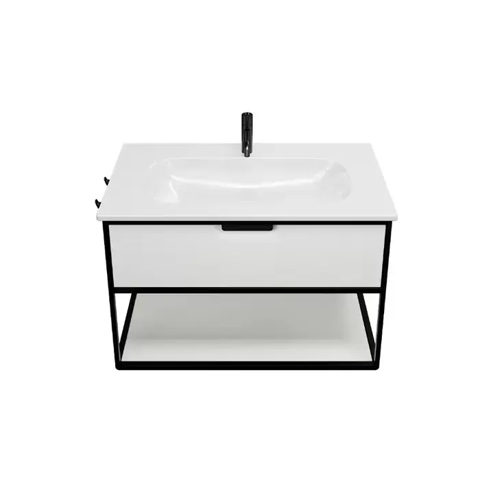 Burgbad Vry Комплект мебели 930х496х600 мм, подвесной, 1 ящик, 1 полка, раков белая глянц с 1 отв для смес, ручка G0253, цвет: белый матовый