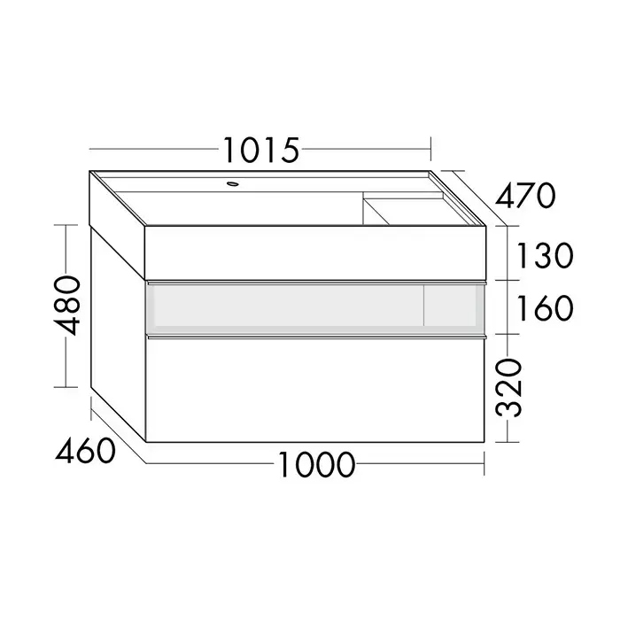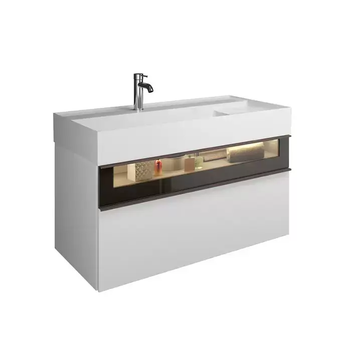 Burgbad Yumo Тумба с раковиной, 101.5х47х48см., с 1 отв., 2 выдв ящика, аллюм рамка,вставка из дымч стекла, светодиодн. подсв., подвесная, цвет: белый глянец