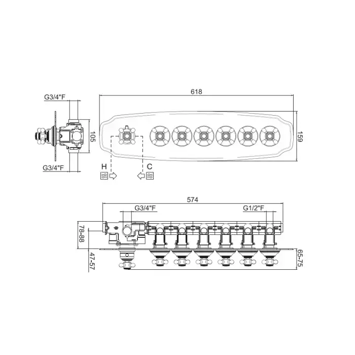 Carimali Colonial Смеситель термостатический, встраиваемый, на 6 выходов, цвет: хром
