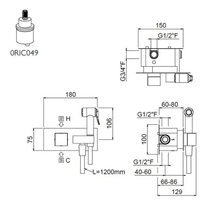 Carimali ilQuadro Гигиенический душ с прогрессивным смесителем, цвет: хром