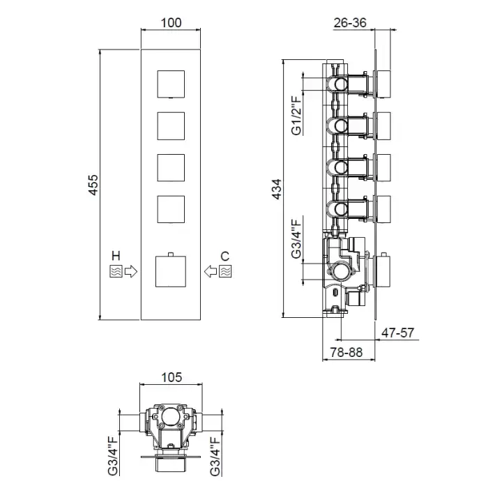 Carimali ilQuadro Смеситель термостатический, встраиваемый, на 4 выхода, цвет: хром