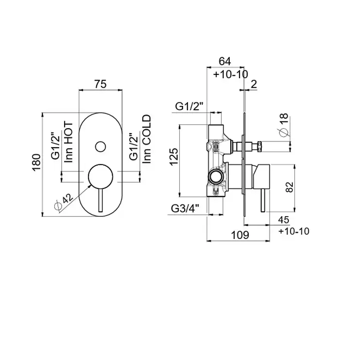Carimali Iltondo Смеситель для душа, встраиваемый, с ручным душем, с переключателем на 2 потока, с автоматическим/ручным переключателем, цвет: хром