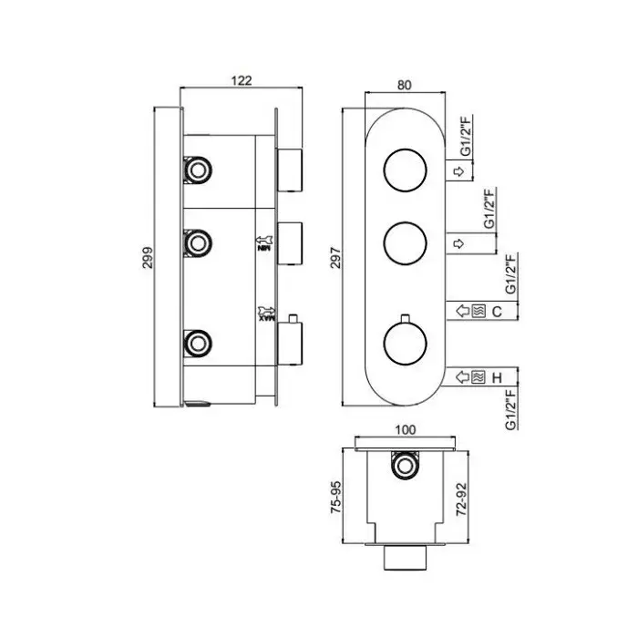Carimali ilTondo Смеситель для душа, встраиваемый, термостатический, цвет: хром