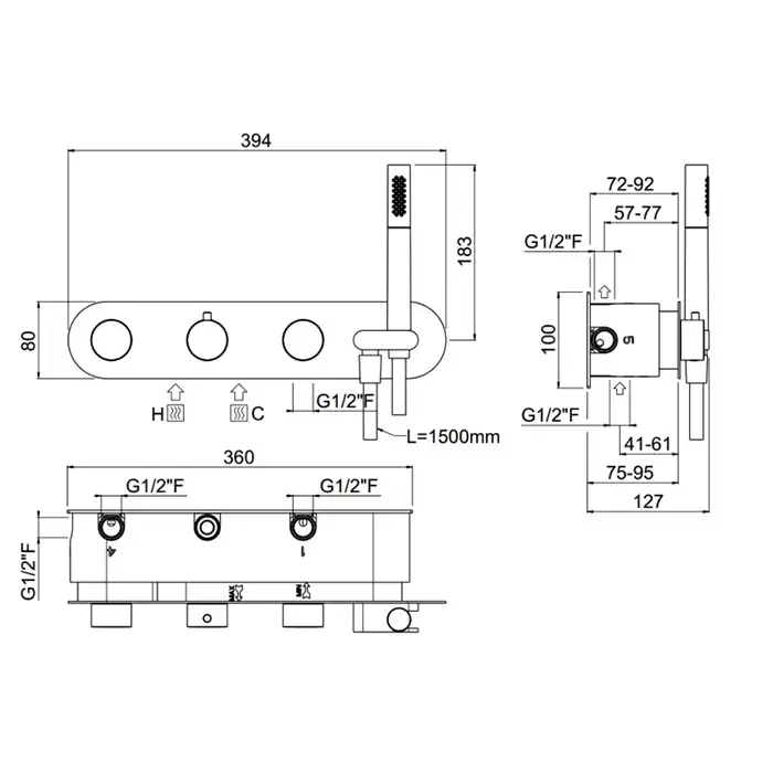 Carimali Iltondo Смеситель для душа, встраиваемый, термостатический, 5 выходов, ручным душем, внешняя часть, цвет хром