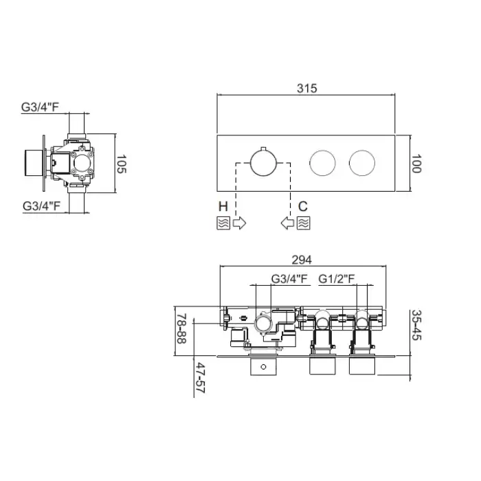 Carimali ilTondo Смеситель термостатический, встраиваемый, на 2 выхода, цвет: хром