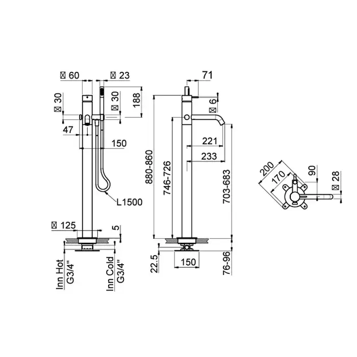 Carimali ilTondo Внешняя часть отдельностоящего смесителя для ванны (излив 255 мм),цвет: хром