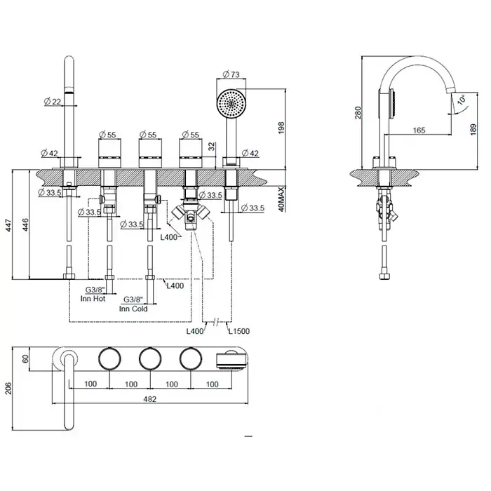 Carimali Still Oh Смеситель для ванны, на 5 отв., с ручным душем, цвет: хром