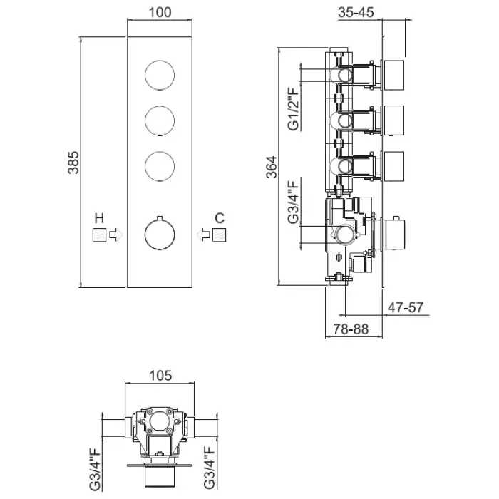 Carimali Встраиваемая часть для термостатического смесителя с 3 выходами, цвет: хром