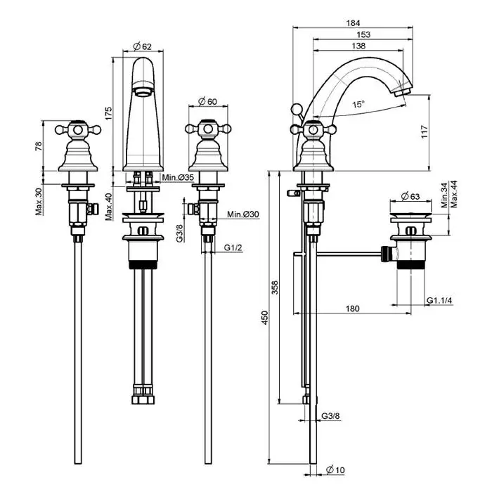 Carlo Frattini Elizabeth Смеситель на 3 отв. для раковины, цвет: золото