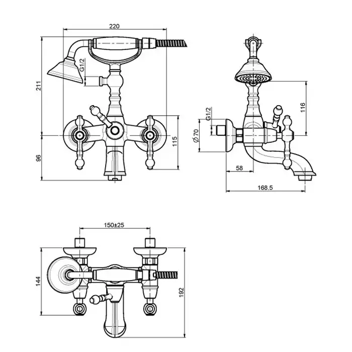 Carlo Frattini Epoque, Смеситель для ванны с душевым комплектом, цвет: Хром