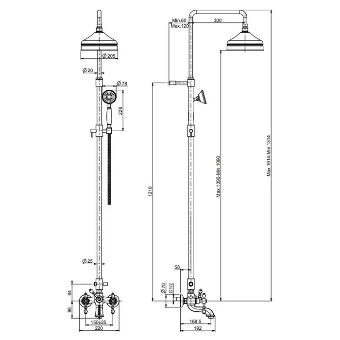Carlo Frattini Epoque, Смеситель с душевой стойкой, верхним душем и душевым комплектом, цвет: Хром