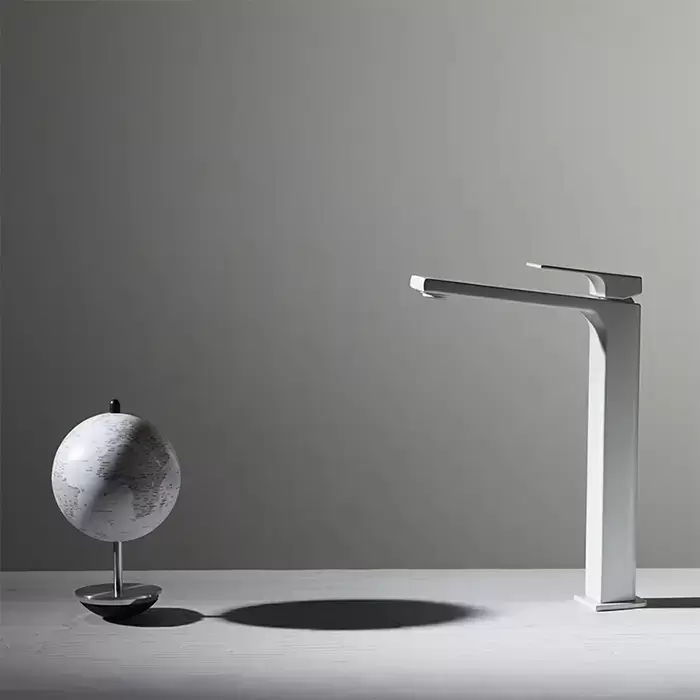Carlo Frattini Fit Смеситель для раковины, на 1 отв, донный клапан click-clack, высокий, h267мм излив 160мм, цвет: белый матовый