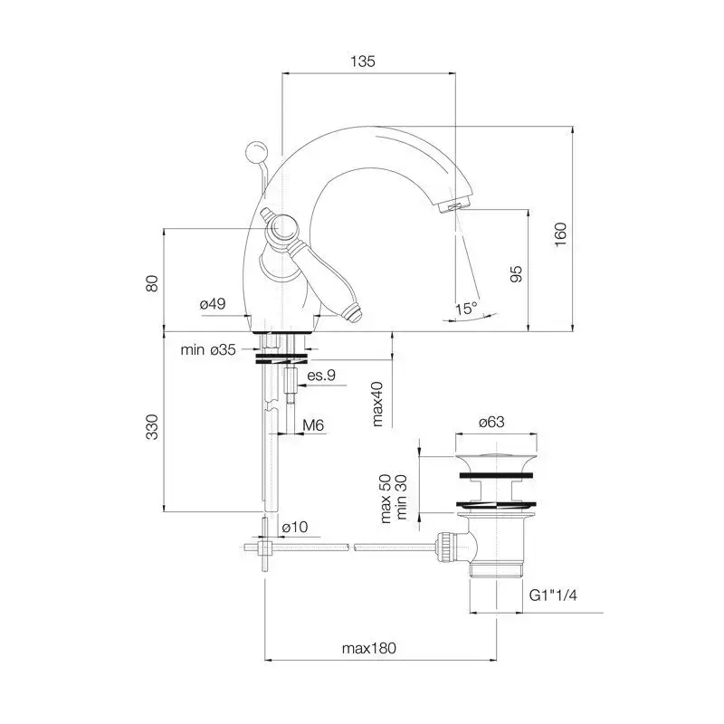 Carlo Frattini Herend, Cмеситель на раковину на 1 отверстие, цвет: Хром