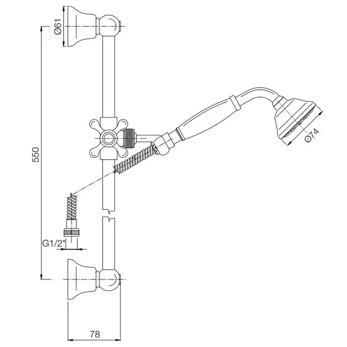 Carlo Frattini Herend Душевой гарнитур, в комплекте: стойка, шланг 1500 мм, держатель для лейки, лейка, цвет: хром
