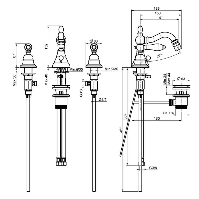 Carlo Frattini Herend Смеситель на биде на 3 отв., с вращающимся изливом, цвет: бронза