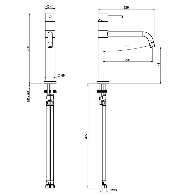Carlo Frattini Kitchen Кухонный смеситель с двумя гибкими шлангами 370 мм, цвет: хром