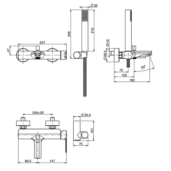 Carlo Frattini Mast Смеситель для ванны, настенный, ручным душем, цвет: хром
