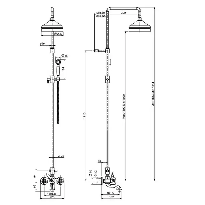 Carlo Frattini Olivia Душевая стойка, в ком-те: смеситель, стойка, шланг, ручной душ, верхняя лейка, цвет: золото