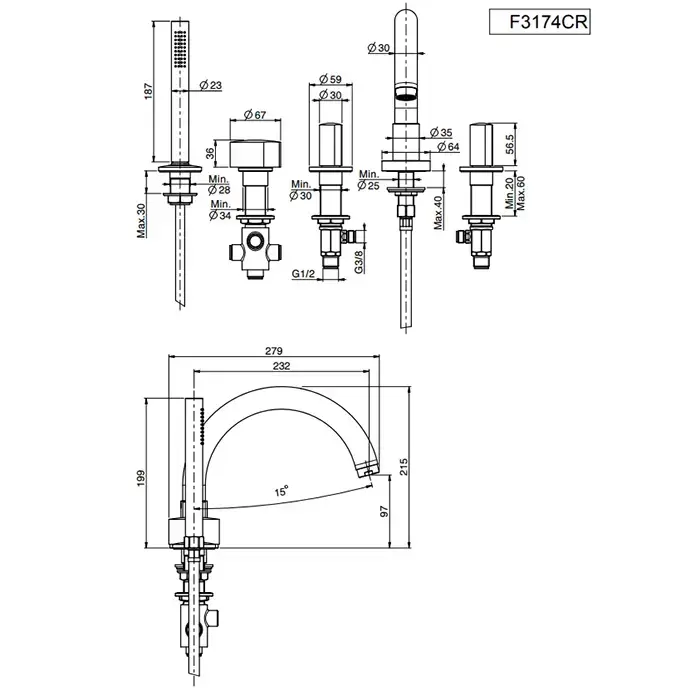 Carlo Frattini So Смеситель на борт ванны двойной, с изливом, с душевым комплектом, цвет: хром