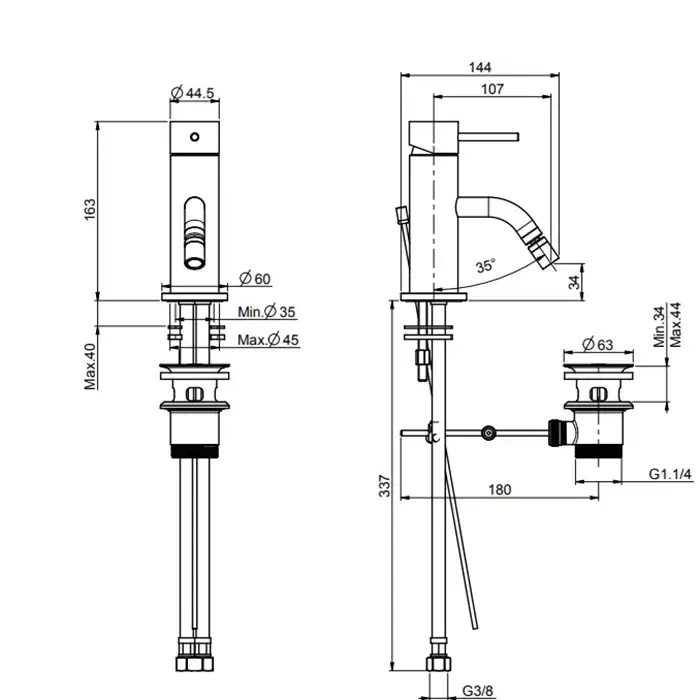 Carlo Frattini Spillo-up Смеситель для биде, ручка "XS", с донным клапаном , цвет: хром