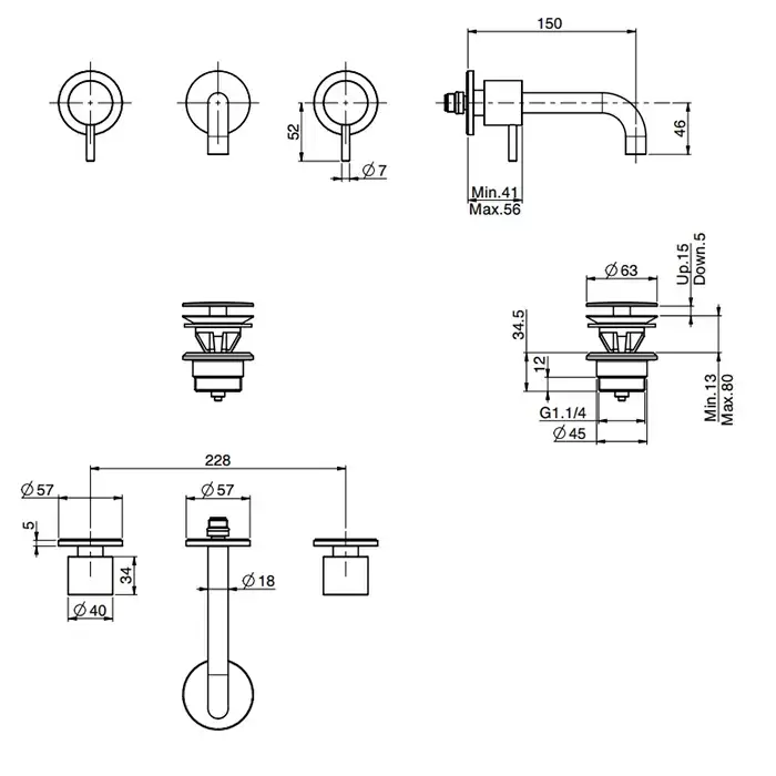 Carlo Frattini Spillo Up Смеситель для раковины, встраиваемый, излив: 15см, с донным клапаном, внешняя часть, цвет: хром