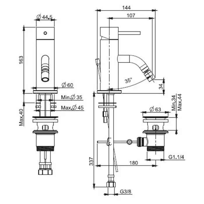 Carlo Frattini Spillo Up XS Смеситель для биде на 1 отверстие, однорычажный, с донным клапаном, цвет: черный хром
