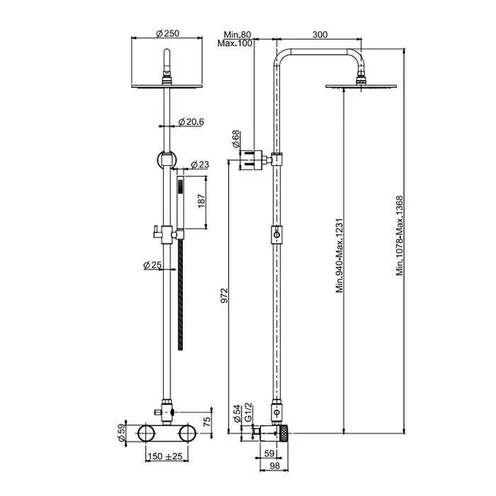 Carlo Frattini Texture Collection Смеситель для душа внешнего монтажа, ручки "X", с верхним душем Ø 250 мм. и душевым комплектом, цвет: брашированое золото
