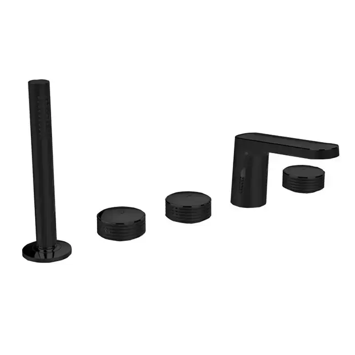 Carlo Frattini Texture Collection Смеситель на борт ванны, ручки "H", с ручным душем и шлангом, цвет: чёрный матовый