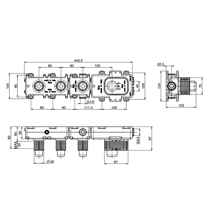 Carlo Frattini Внутренняя часть встраиваемого термостатического смесителя для душа с душевым комплектом, на 2 источника