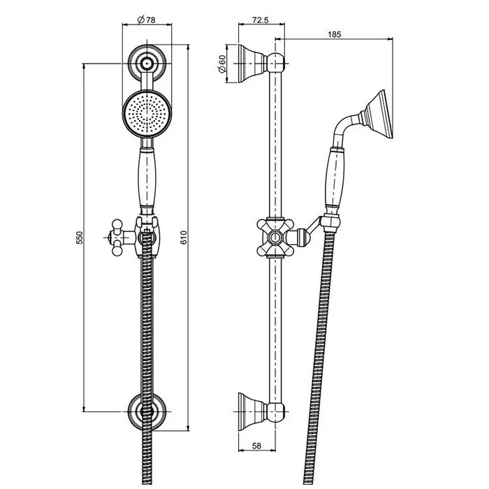 Carlo Frattini Wellness Душевая штанга с ручным душем и шлангом 1500 мм., цвет: хром