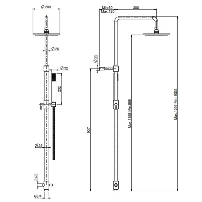 Carlo Frattini Wellness Душевая стойка с переключателем, верхним душем Ø 250 мм. из латуни, ручным душем и шлангом 1500 мм., цвет: хром