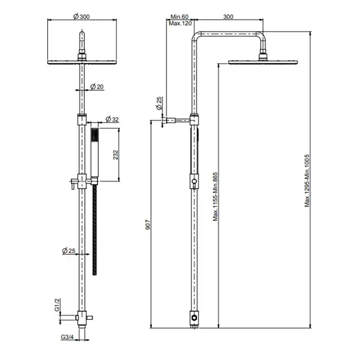 Carlo Frattini Wellness Душевая стойка с переключателем, верхним душем Ø 300 мм. из латуни, ручным душем и шлангом 1500 мм., цвет: хром