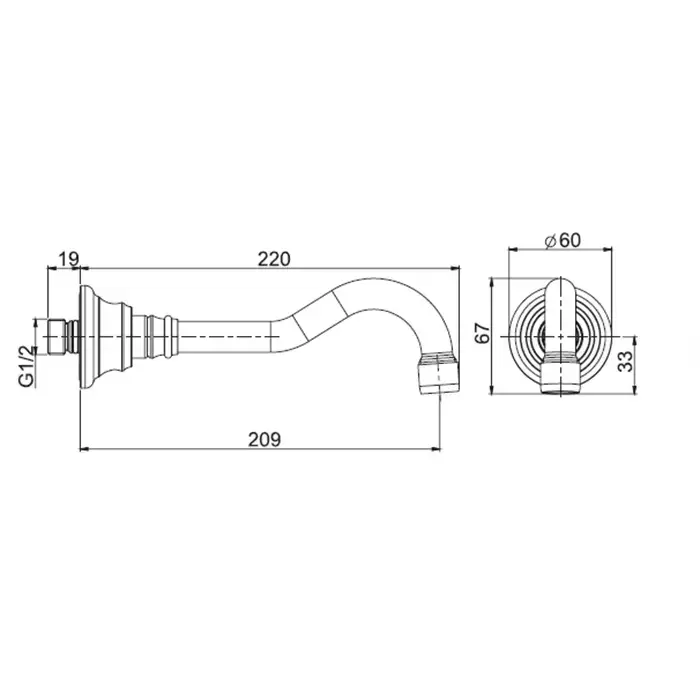 Carlo Frattini Wellness Излив для настенного монтажа, длина 209 мм., цвет: золото
