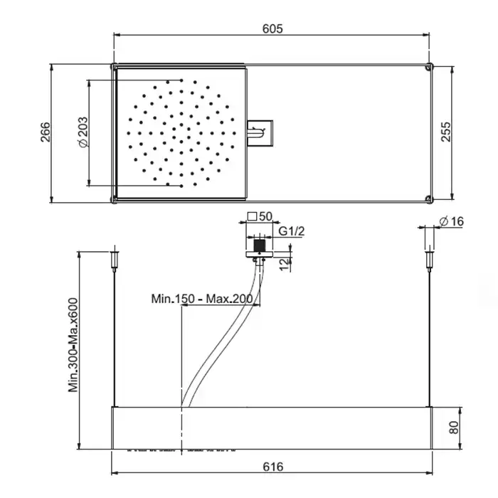 Carlo Frattini Wellness Верхний душ Moove потолочного монтажа в черной матовой раме, передвижной модуль подачи воды, цвет: хром