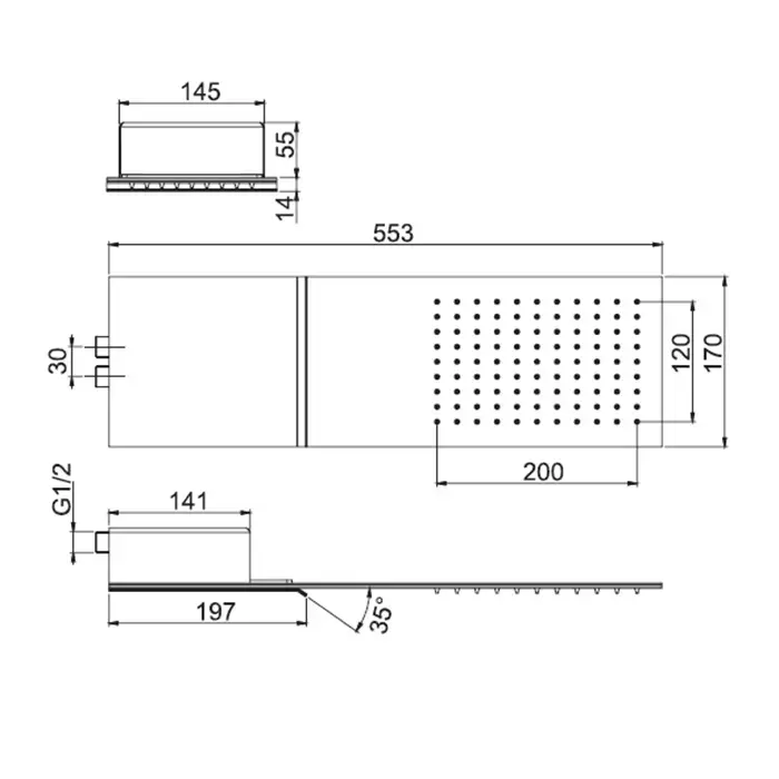 Carlo Frattini Wellness Верхний душ настенного монтажа, 2 режима: дождь, каскад, нержавеющая сталь, цвет: хром