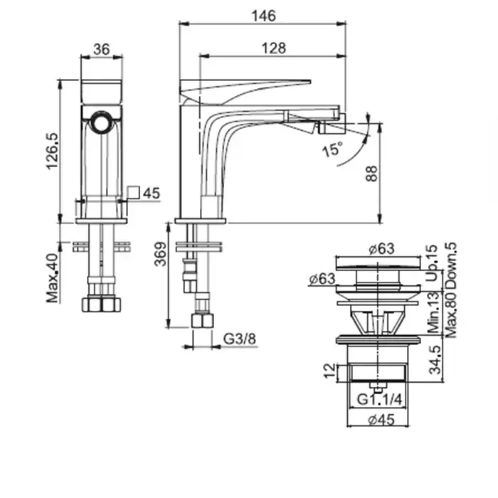 Carlo Frattini Zeta Смеситель для биде, на 1 отверстие, донный клапан click-clack, цвет: чёрный матовый