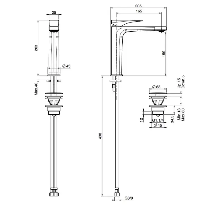 Carlo Frattini Zeta Смеситель для раковины, на 1 отв., излив 16.5см., с донным клапаном, цвет: черный матовый