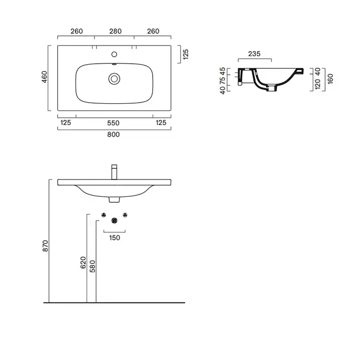 Catalano Alvea Раковина 80х46см., подвесная или на мебель, без отв., цвет: белый глянцевый